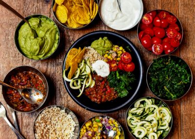 Wir bieten diverse Catering-Optionen, sodass für jeden Geschmack etwas dabei ist. Wir bieten auch dreimal pro Jahr Veranstaltungen an, für die man sich anmelden kann: unsere Eat-and-Talk-Events. Wir bieten auch Kochkurse an, je nach Standort.